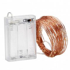 Нить "Роса" медь, 10 м х 100 диодов, от батареек, теплый белый Нить "Роса" медь, 10 м х 100 диодов, от батареек, теплый белый