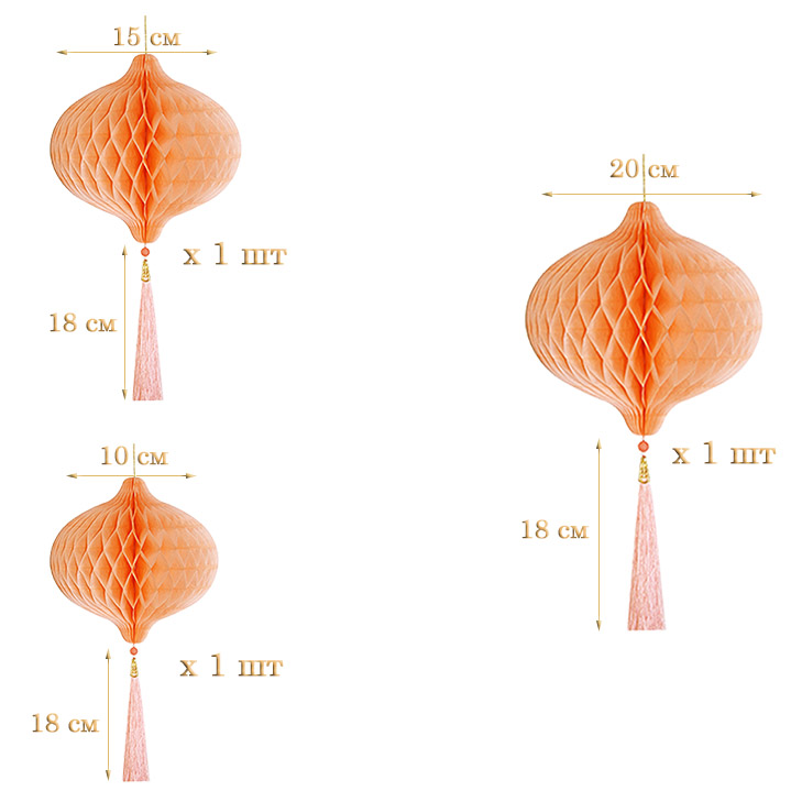 НАБОР бумажное украшение Шары-соты с кисточкой, персиковый - 3шт: