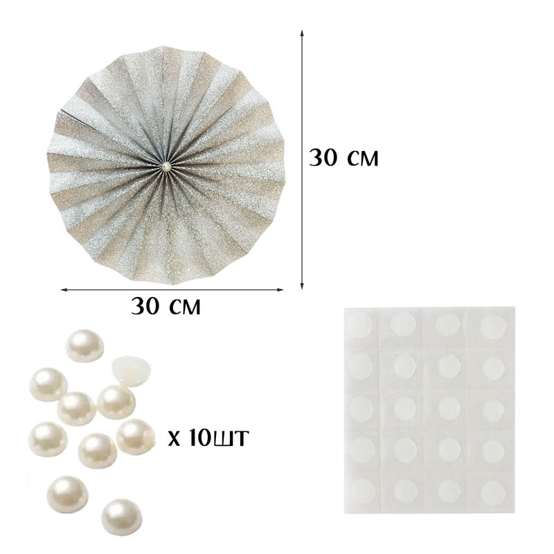 Фанты выполнены из двусторонней бумаги с устойчивым блестящим покрытием, похожим на глиттер. Главное преимущество материала в том, что он не осыпается и не шелушится, сохраняя безупречный вид до и после использования. С помощью прозрачных клейких точек бусины легко и надежно фиксируются в центре каждого фанта, позволяя собрать готовый декор за несколько минут.