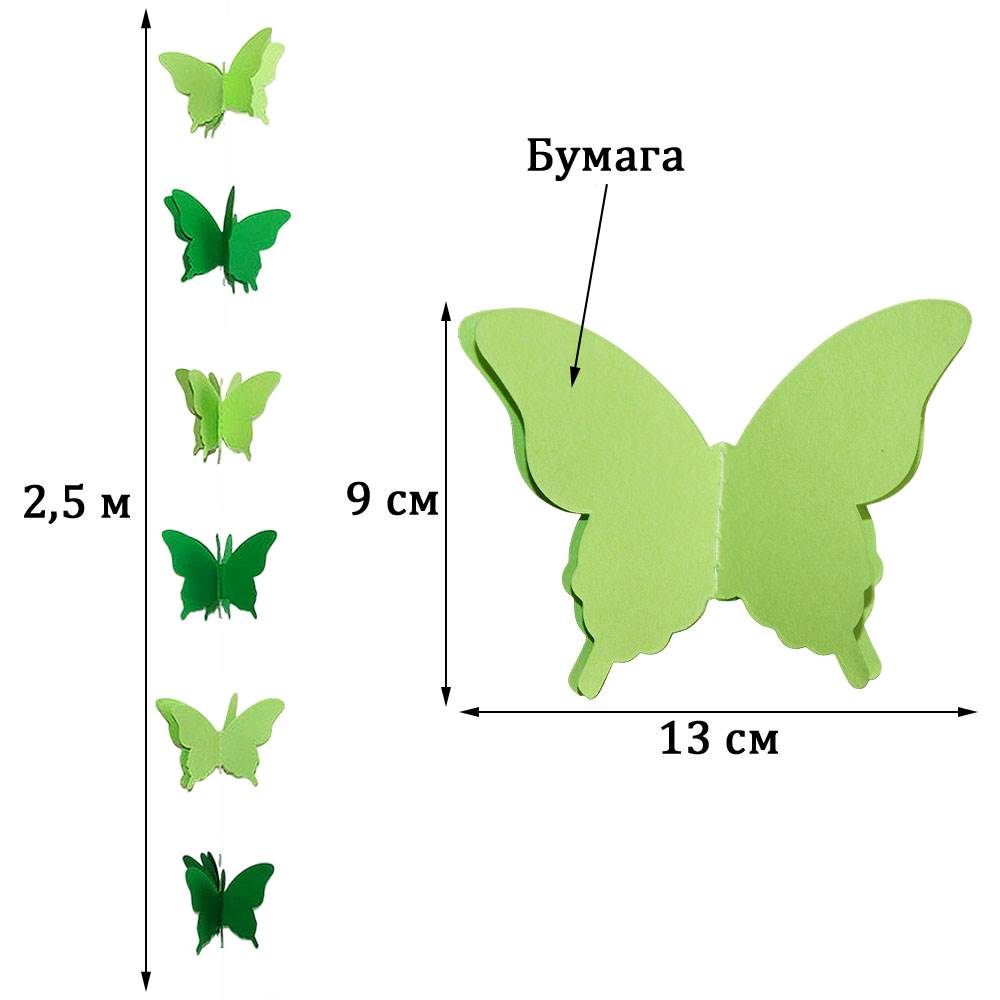 Расправьте крылья и создайте праздничное настроение. Гирлянда идеально подходит для украшения детских комнат, свадеб, окон, стен и фотозон. Объемные бабочки на нитке добавят нежности и легкости интерьеру.