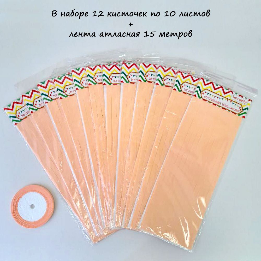 Гирлянда тассел 12 кисточек по 10 листов, персиковый