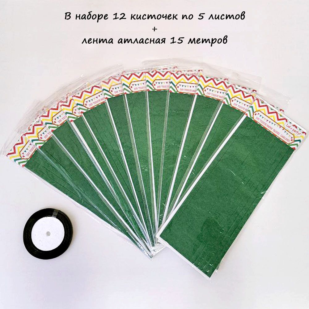 Гирлянда тассел 12 кисточек по 5 листов, зеленый