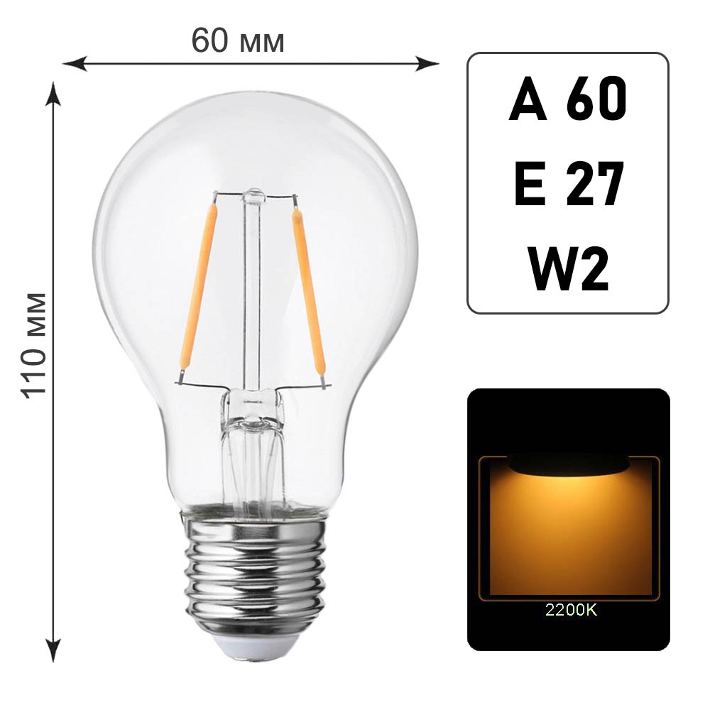 Лампа филаментная A60 E27 W2 K2200