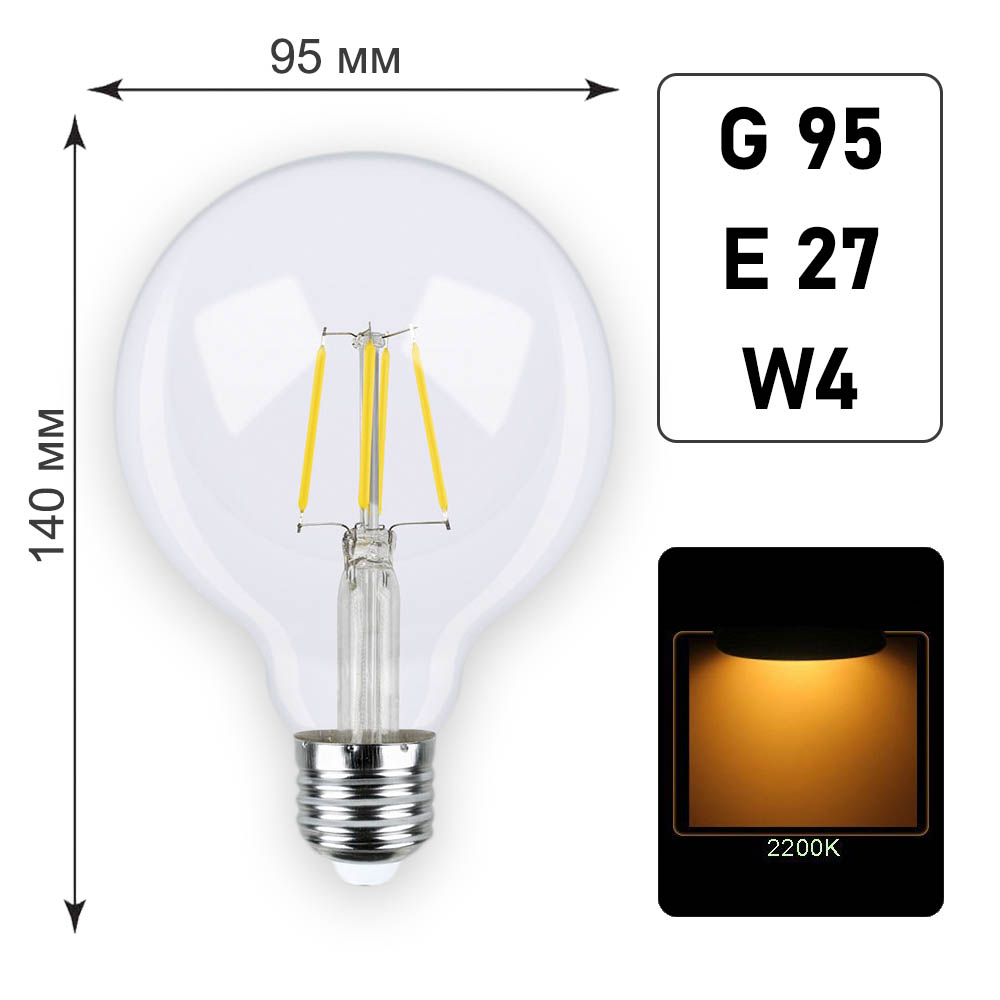 Лампа филаментная G95 E27 W4 K2200