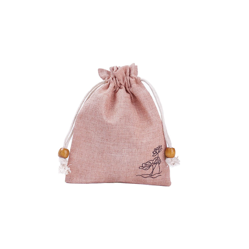 Мешочек из искусственного льна с орнаментом 10х14 см, нежно-розовый