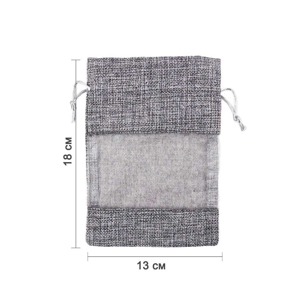 Мешочек из мешковины и органзы 13х18 см серый