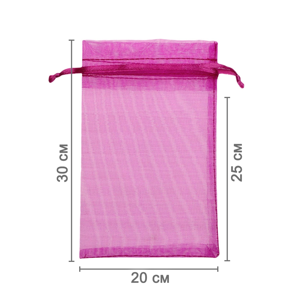 Мешочек из органзы 20 х 30 см — стильный аксессуар для упаковки средних и крупных предметов. Полупрозрачная ткань подчёркивает содержимое и придаёт аккуратный вид.