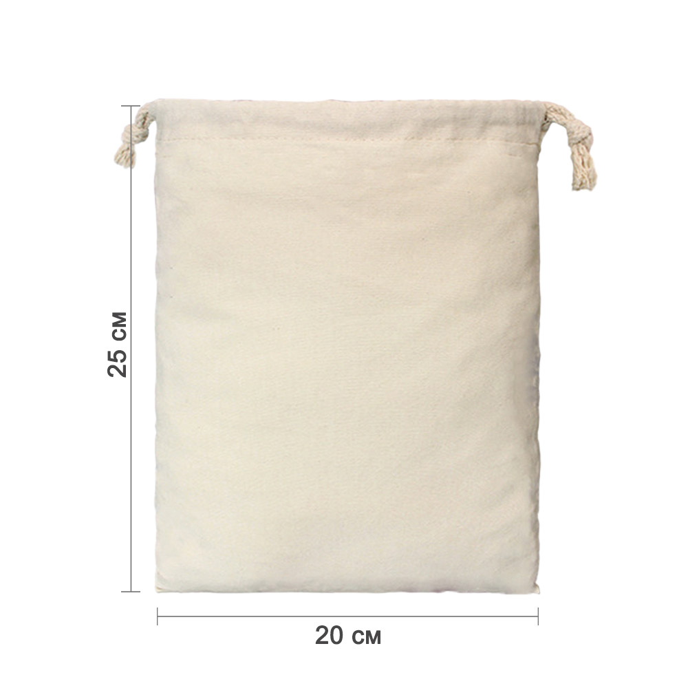 Мешочек из хлопка 20×25 см — универсальная упаковка для подарков, хранения и творчества. Натуральный хлопковый материал приятен на ощупь и подходит для украшений, сувениров, косметики, сладостей и других мелочей. Лаконичный дизайн делает мешочек удобным решением как для подарочной упаковки, так и для повседневного использования.