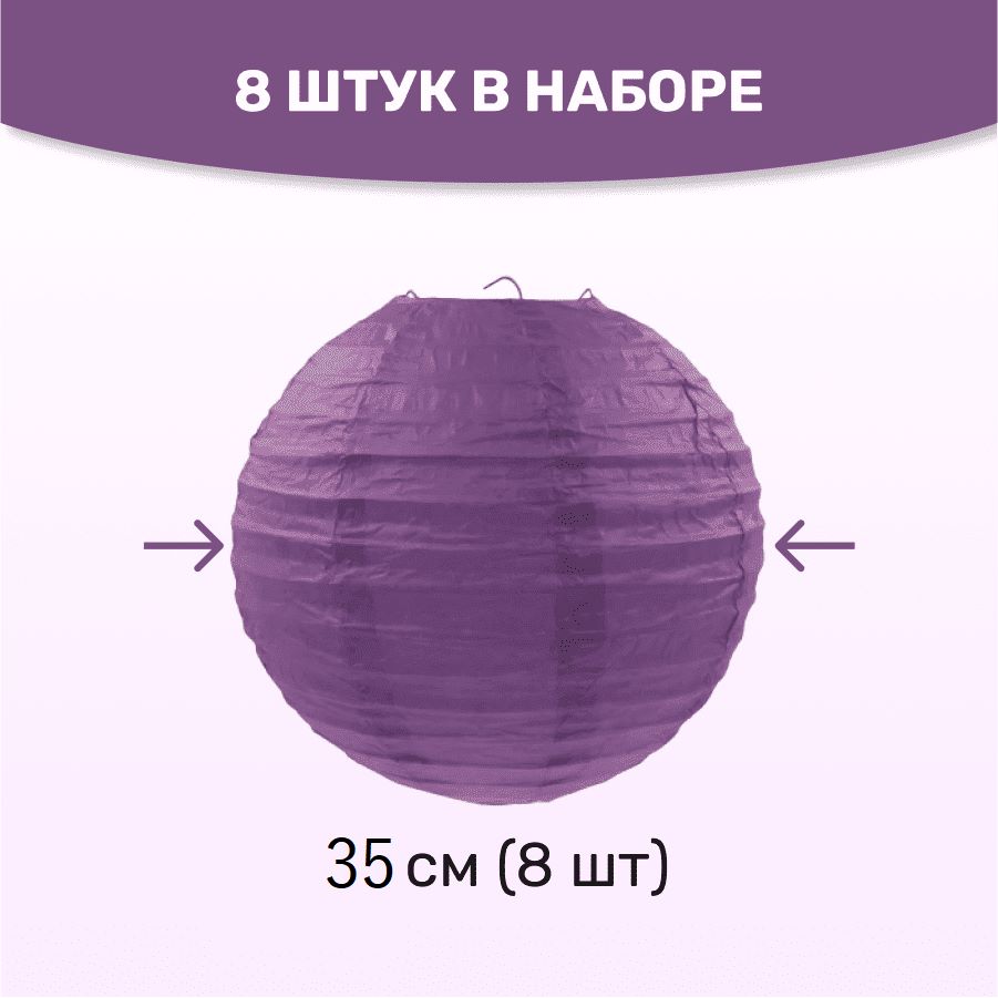 Комплект подвесные фонарики 35 см х 8 шт, фиолетовый