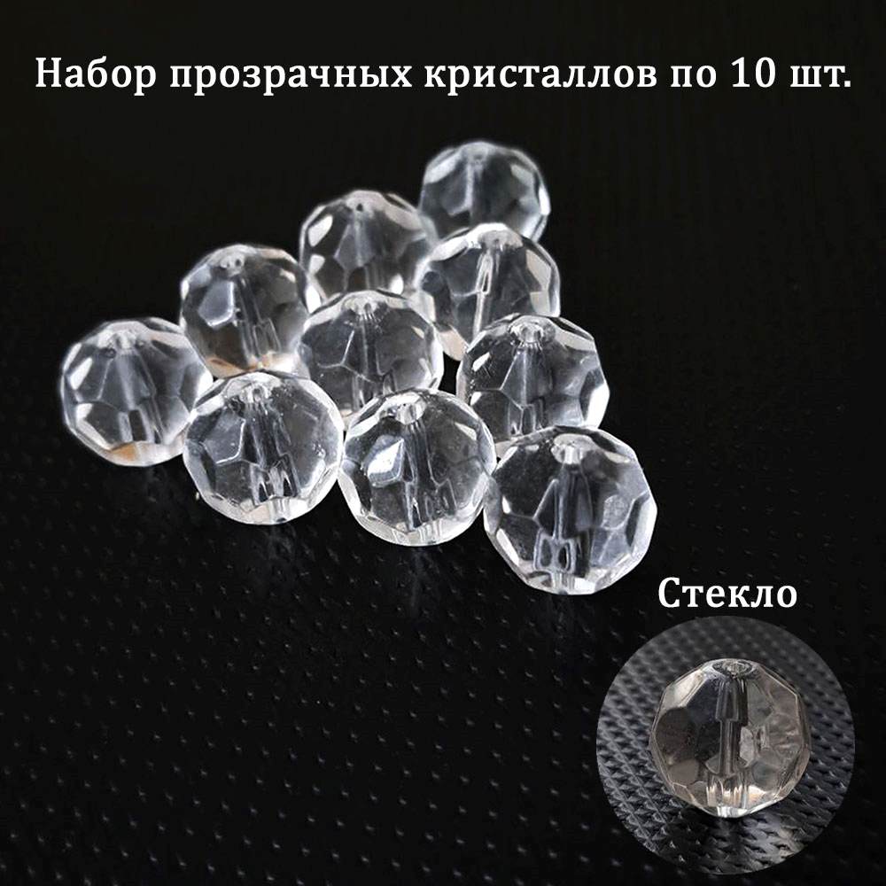 Набор прозрачных кристаллов "Граненый круг" 10 штук по 14 мм подойдет для творчества и оформления декора.