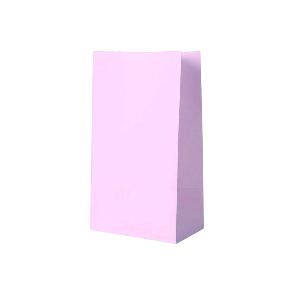 Подарочный пакет из крафтовой бумаги пастельного оттенка с белыми бумажными ручками и белой внутренней стороной.