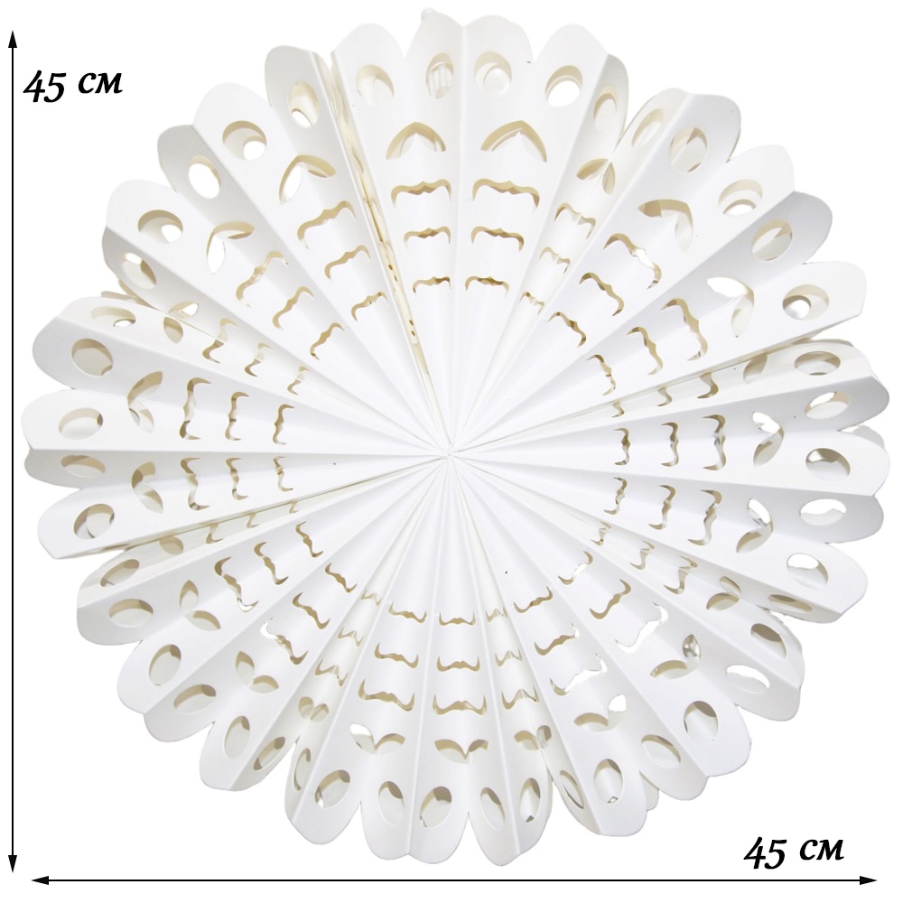 Снежинка на липучках размером 45 см, белого цвета, изготовлена из высококачественной бумаги.