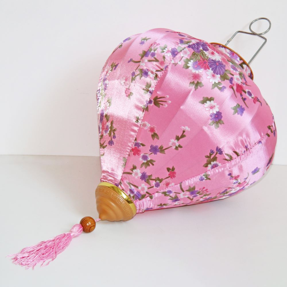 Это традиционные подвесные фонарики ручной работы, изготовленные из шелкового материала с элегантным цветочным узором, которые делают его изысканным и красивым.