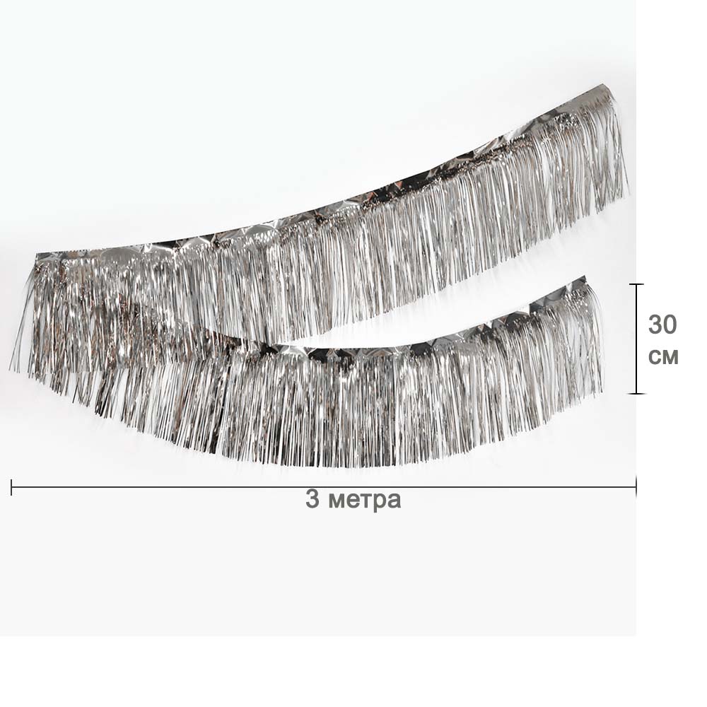 Занавес Дождик бахрома 30 см х 3 м, металлик серебро