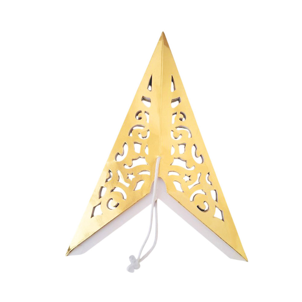Аккуратно расправьте лучи, чтобы придать звезде идеальную объемную форму, затем зафиксируйте встроенным шнуром для подвеса. К этому описанию нужно добавить еще тот факт, что картон идёт с блестками.